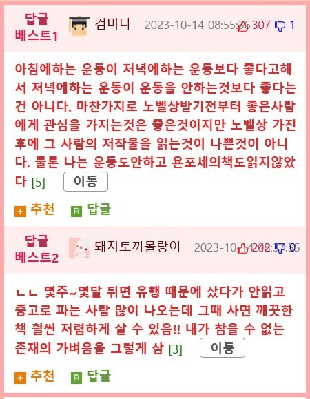 지금 노벨문학수상자 책 사는건 하수라는 독붕이 작성자 정보 꼬돌이 작성 작성일 2023.10.21 23:56 컨텐츠 정보 464 조회 목록 관리 글수정 글삭제 답글 본문 참을수 없는 지갑의 가벼움 아 현금 안 갖고 다니지 관련자료 이전 다이빙 선수들이 입수 할 때 물이 거의 안 튀는 이유 작성일 2023.10.21 23:44 다음 김치 냉장고를 본 일본인 반응 작성일 2023.10.21 23:40 댓글 0 등록된 댓글이 없습니다. Select File Upload File 목록 관리 글수정 글삭제 답글