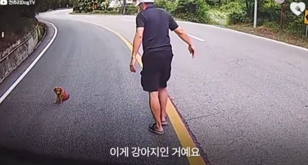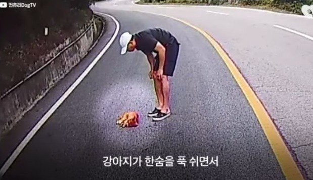 길에서 힘 없이 쓰러진 강아지를 발견한 운전자