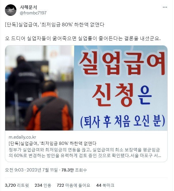 실업율을 줄이는 획기적인(?) 방법 작성자 정보 꼬돌이 작성 작성일 2023.07.12 12:58 컨텐츠 정보 902 조회 목록 관리 글수정 글삭제 답글 본문 관련자료 이전 요즘 전문가와 비전문가 유튜버 상황 작성일 2023.07.12 10:54 다음 출근하려면 필요한거 작성일 2023.07.12 08:30 댓글 0 등록된 댓글이 없습니다. Select File Upload File 목록 관리 글수정 글삭제 답글