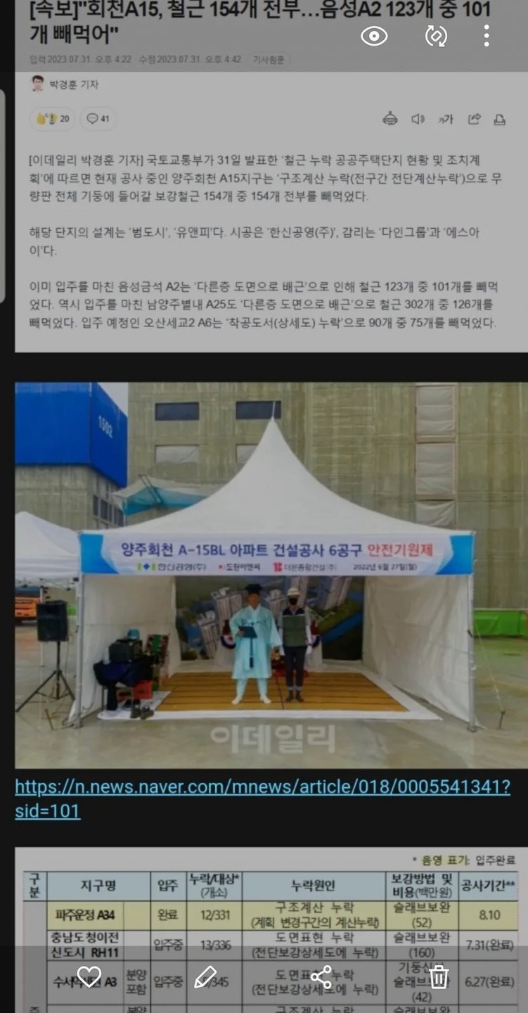 철근누락아파트 근황 작성자 정보 하이바 작성 작성일 2023.08.01 10:01 컨텐츠 정보 770 조회 목록 관리 글수정 글삭제 답글 본문 결국 '0철근'아파트 발견 ㅅㅂㅋㅋㅋ 관련자료 이전 수상한 아이스크림 가게.manhwa 작성일 2023.08.01 01:39 다음 예비군 훈련 가서 점심상태 좀 별로라고 사진올리고 하는거 너무 하지않음? 작성일 2023.08.01 08:49 댓글 0 등록된 댓글이 없습니다. Select File Upload File 목록 관리 글수정 글삭제 답글